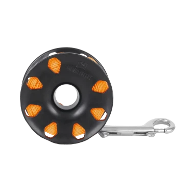 The 120’ spool length is ideal for use as a safety spool in cave or wreck diving, or shooting a bag from deeper depths.