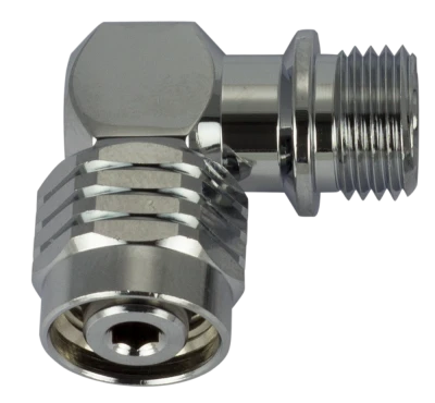 This fixed 90 degree adapter goes between your second stage and the low pressure hose. It helps the routing of your regulator down under your arm or a more streamlined and natural feeling.