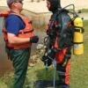 Simplest way to communicate to one diver through a hardwire connection Surface unit is self contained and compact size 20 watts of power for clear communication Easy to use controls: Push to talk and adjustable volume External connection allows recording communications Uses 16 AA Alkaline Batteries (6 hours continuous use) Optional rechargable batteries and charger Connection to run from an external 12 volt battery Size: 9″ x 7.8″ x 3.4″