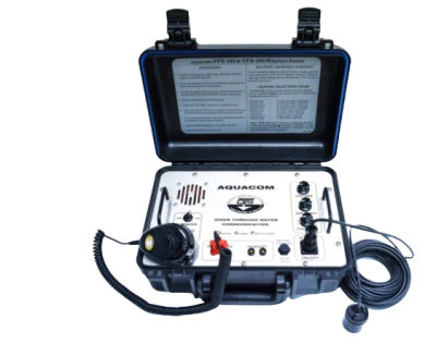 Simplest way to communicate divers using wireless system Works with XT-100 Buddy Phone, RX-100 Buddy Phone (receive only), MKII-Buddy Phone and Mantis Buddy Phone Surface unit is self contained and portable Uses a cable/antenna placed in the water to transceive to the divers (included) Switchable between 4 different frequencies for isolating diver communications Adjustable squelch to eliminate unwanted noise Surface unit communicates throught a built-in speaker and handheld mic (included) External connection for recording communications Uses Two 6 Volt lantern batteries (not included) Optional rechargable batteries and charger available External connection to operate the unit from an external 12 volt battery 5 watts of power, for a nominal range up to 4900 feet depending on conditions and environment
