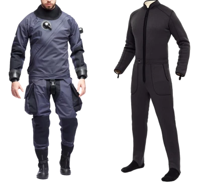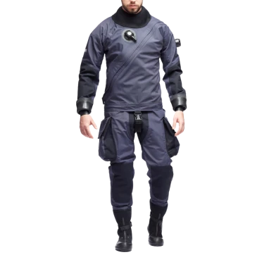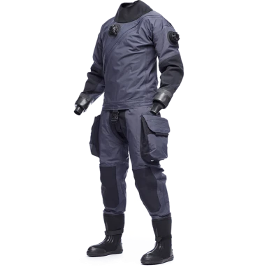 - Comfortable and flexible neoprene boots, latex seals at neck and wrists, Apeks inlet and outlet valves.