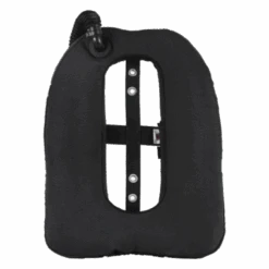 The XT backplate is set up with 11″ (27.9cm) on-center mounting holes to accommodate standard double tank bolt kits, including two hole positions for the upper bolt providing user adjustability of tank height. Two sets of 2″ slots along the center channel allow divers to weave cam straps onto the backplate for single tank diving use without the need for a single tank adapter. Two pairs of holes on side tabs are positioned for use with bungees to be able to sidemount stage bottles. A series of additional holes along the outer edges of the backplate provides different options for mounting lights, pony and suit inflation bottles, lift bags, and other accessories.
