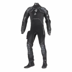 The premium-plus Exodry offers a unique approach to drysuit design by fusing 4mm high-density neoprene with latex wrist and neck seals. This hybrid design is extremely effective, delivering minimal inherent buoyancy, maximum range of motion and an excellent sealing system. This comfortable suit comes with protective shoulder and knee panels, a plush interior lining, blue-style suspenders and much more. For 2019, updated semi-rigid dive boots feature new soft yet protective soles and include fin strap retainers and Velcro straps to improve fit while preventing air from shifting when diving in the heads-down position. The Exodry is a smart choice for all types of diving and can be used with or without an undersuit.