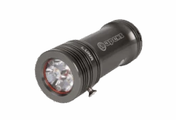 The Luna primary light has a 2000 lumen max output and up to 8 hours run time off one charge. Three power output settings and a handy digital fuel gauge gives you real-time battery status feedback, including the remaining run time and percentage charged. Fully rechargeable via USB, the Luna ships with a neoprene glove handle for hands-free comfort during your dive.