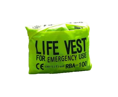 Tear open vacuum pack and don like an airline PFD