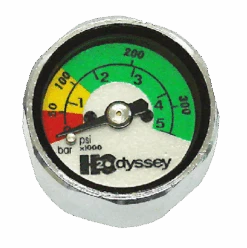 H2Oddsey Mini PSI/BAR Button Gauge screws directly into the high pressure port on the first stage of your regulator.