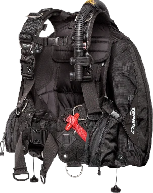 With the addition of harness webbing and a new threading arrangement, the diver can easily add more D-rings and other accessories to the shoulder. This feature allows technical- and accessory-minded divers to further match their BC to the needs of the type of diving they do.