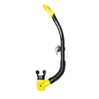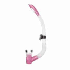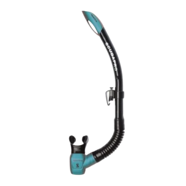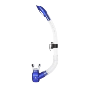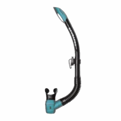 This snorkel is tops when it comes to breathing comfort and ease of clearing. The large-bore upper tube is rigid for stability and allows plenty of airflows, while the corrugated lower tube can be easily positioned when being used, and hangs out of the way when not being used. The semi-dry top helps prevent water from entering, the purge valve positioned at the lowest point makes quick work of any water that does sneak in.