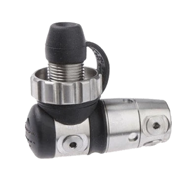 Exclusive, patented Atomic Aquatics “Comfort Swivel” second stage hose. The only second stage swivel of its type that allows unidirectional movement without any loss of performance. This swivel articulates at the slightest movement to eliminate any binding or pulling of the second stage hose in the mouth. Constructed of polished 316 stainless steel.