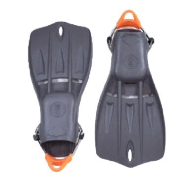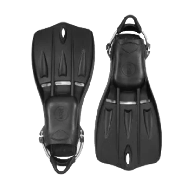 A classic vented fin, redesigned to maximise performance. Utilising natural rubber in a unique density gradient, this fin delivers a comfortable foot pocket combined with optimised stiffness for finning performance. The vented design allows water to flow along the blade reducing drag and fatigue, whilst the stiffening rails and ribs ensure that the blade of the fin is driven through the water to maximise the return on effort. The Tech Fins were developed with technical divers in mind with a slightly negative buoyancy characteristic but is suitable for all levels of diver looking for a high-performance rubber fin. The wider blade gives manoeuvrability without compromising the power which is there when needed, while the shorter length improves agility and makes stowing the fins for transport more convenient. Spring straps with comfortable heel pads keep the feet securely held in place and these spring straps can be removed and changed easily with everyday tools if required. The Tech Fins are supplied with a hanging/carrying strap which may be used to attach them to a BCD or harness for carrying, leaving both hands free for climbing ladders or carrying other gear.