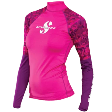 With a UPF Collection long sleeve RASH GUARD you can look sharp while enjoying solid sun protection. Designed for diving but perfect for all water sports, these stylish long sleeve RASH GUARDS are made from high quality polyester fabric, are form-fitting, comfortable, and dry quickly. They also provide UPF 50 UV protection, which puts them in the “Excellent” UV protection category. Engineered for performance, wear a long sleeve RASH GUARD under a wetsuit at depth or by itself when topside for dependable protection from the sun’s rays. Long sleeve RASH GUARDS are available in a variety of colors, guaranteed to brighten any day on – or in – the water.